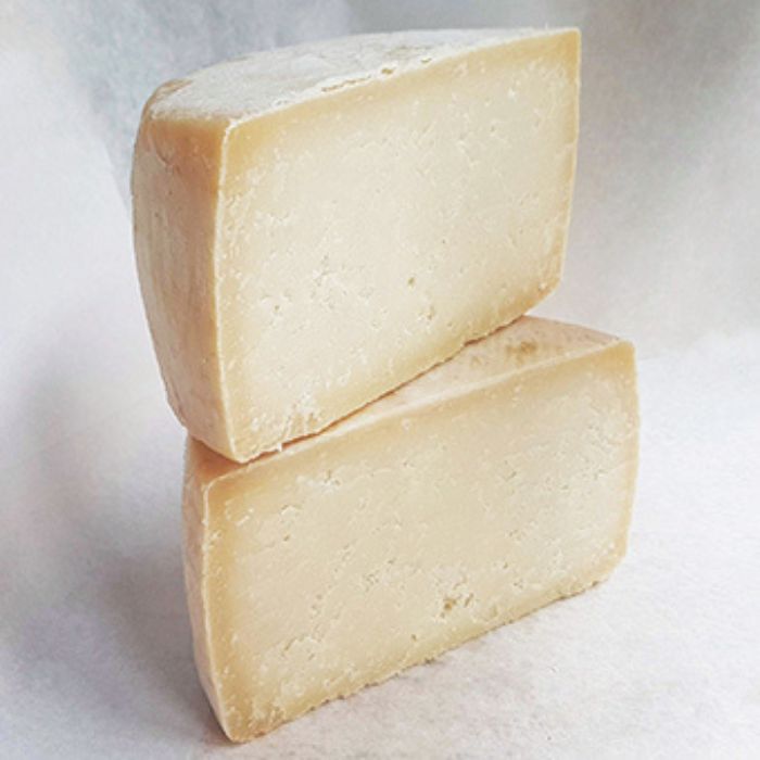 La corteza del queso es dura y está cubierta de manteca, mientras que su pasta es firme y compacta, con un color variable que va desde blanco hasta marfil-amarillento.